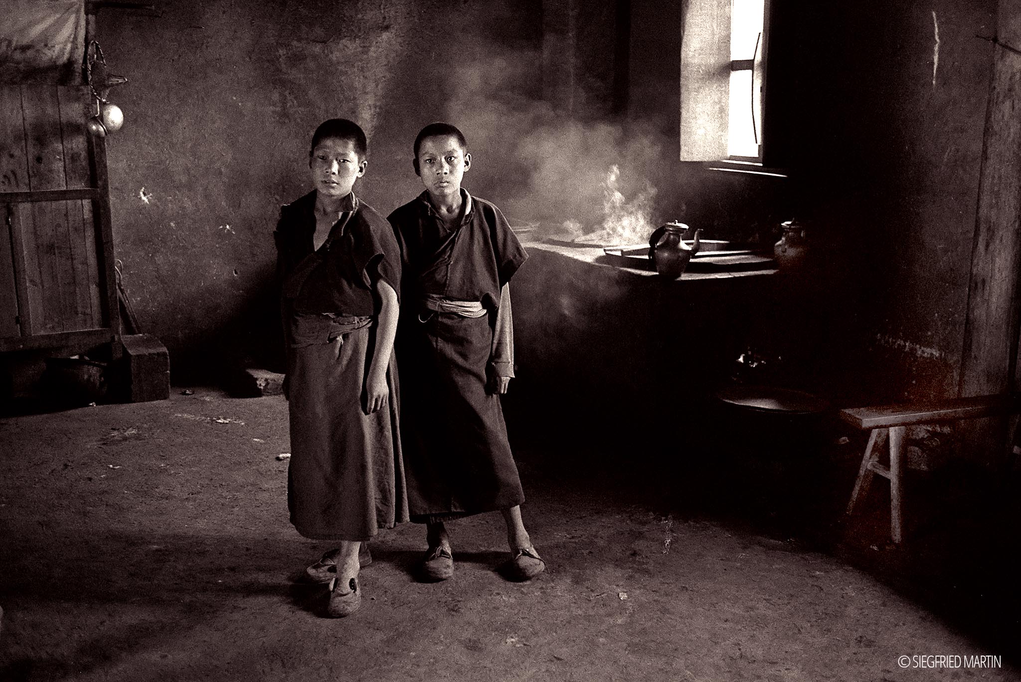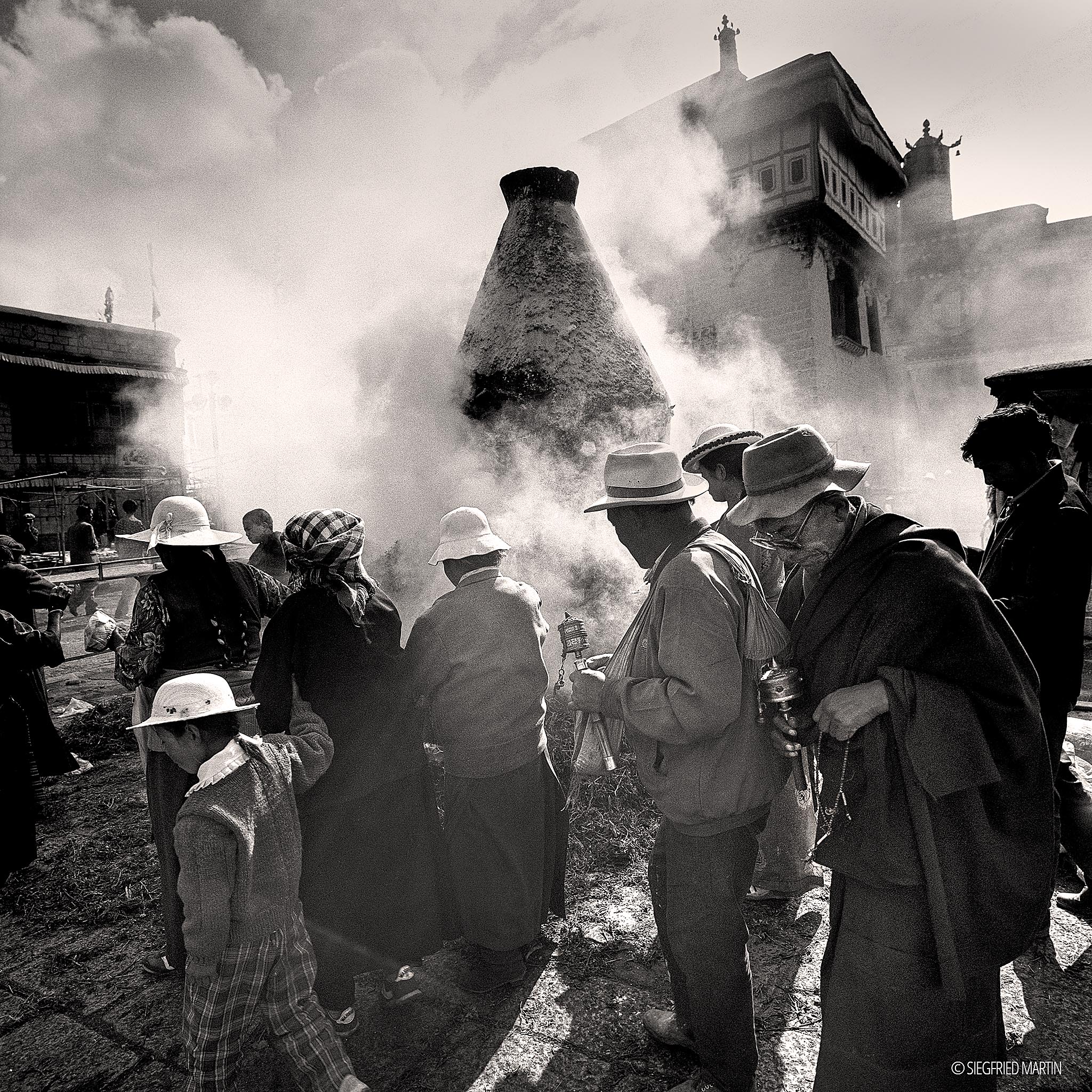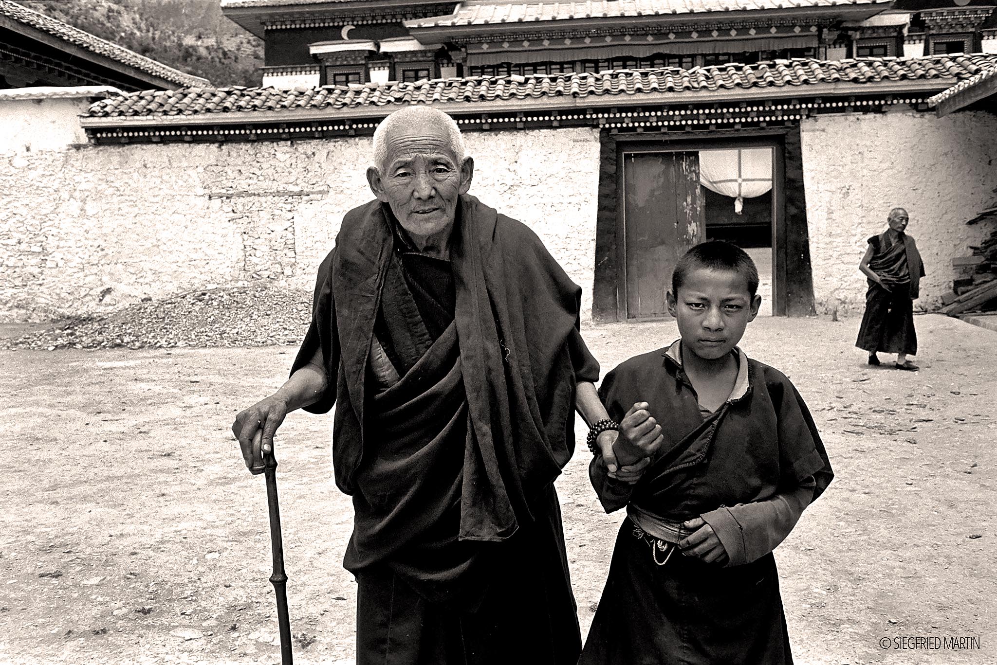 Since 1990 I travelled mostly together with a good friend of mine to Tibet. At this time it was not so easy to travel in Tibet and for the most areas a special permit was neccesary. My friend elaborated new tours for his company as a tour guide so we get each permit we needed – sometimes with supervisor. Each tour we made owns a special topic. So we travelled mostly on steps of famous explorers like John F. Rock, Sven Hedin or Heinrich Harrer and Peter Aufschnaiter. Our team always was very small: a Chinese guide, one or two locals, a driver when needed. Thereby we come very closed to the natives. It was my utmost concern to preserve the culture and ancient customes because it's disappearing. I'm deeply grateful to the people either this one which helped us or all those which trust in me and let make a photograph. Tashi delek - བཀྲ་ཤིས་བདེ་ལེགས
